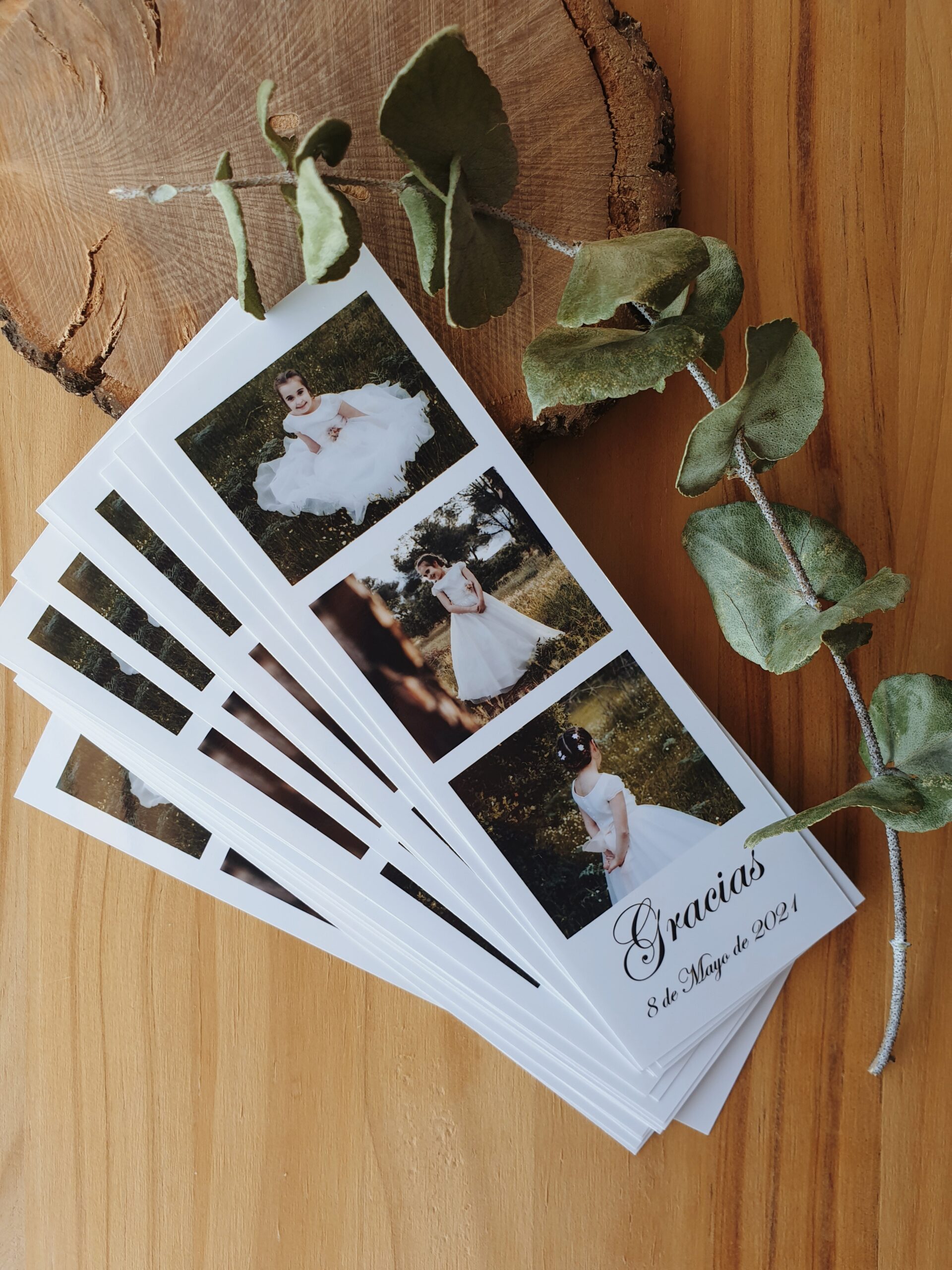 Un marcapáginas con estilo fotomatón, totalmente personalizado con las palabras de agradecimiento que vosotros queráis.