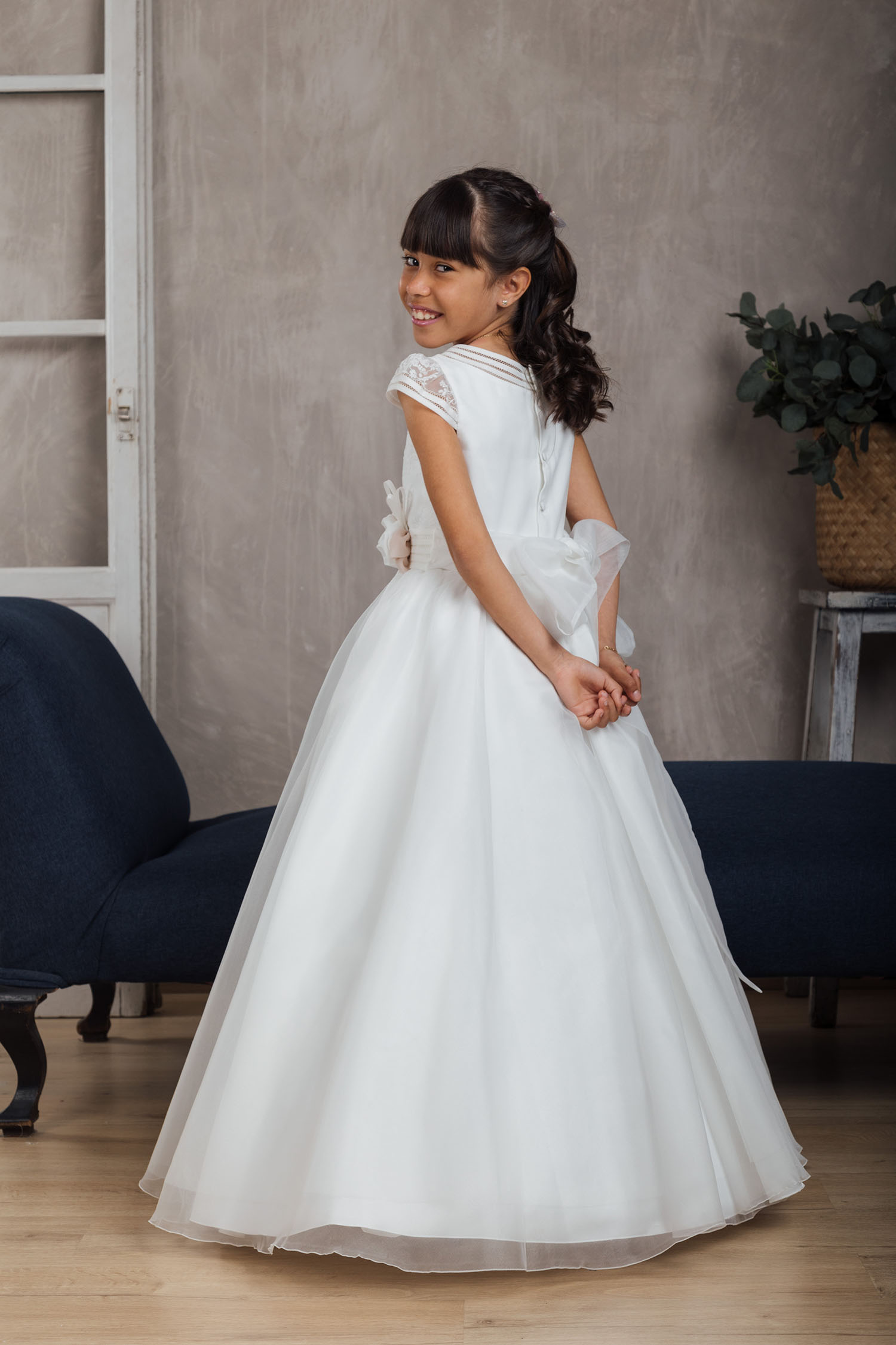 Realizamos el reportaje en estudio. Con decorados minimalistas, aportando un estilo moderno y delicado. La sesión está pensada para realizarla antes de la Comunión (pre comunión).